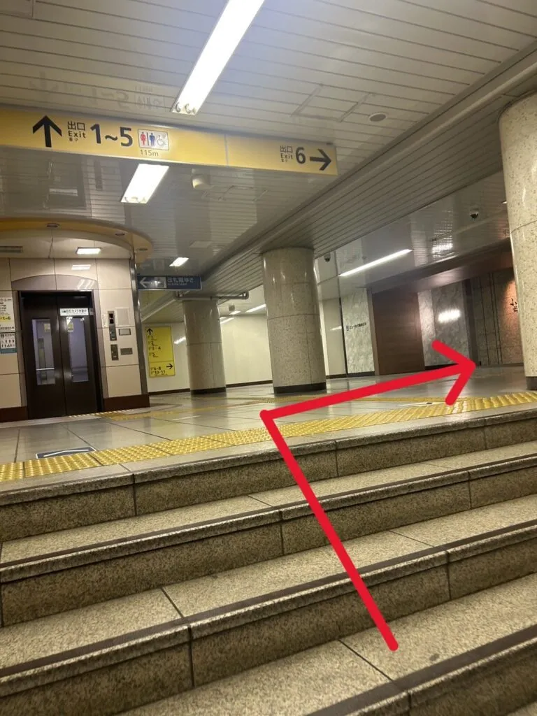 そのまま真っすぐ階段を上がる、もしくは右奥に行くとエレベーターもあります。
