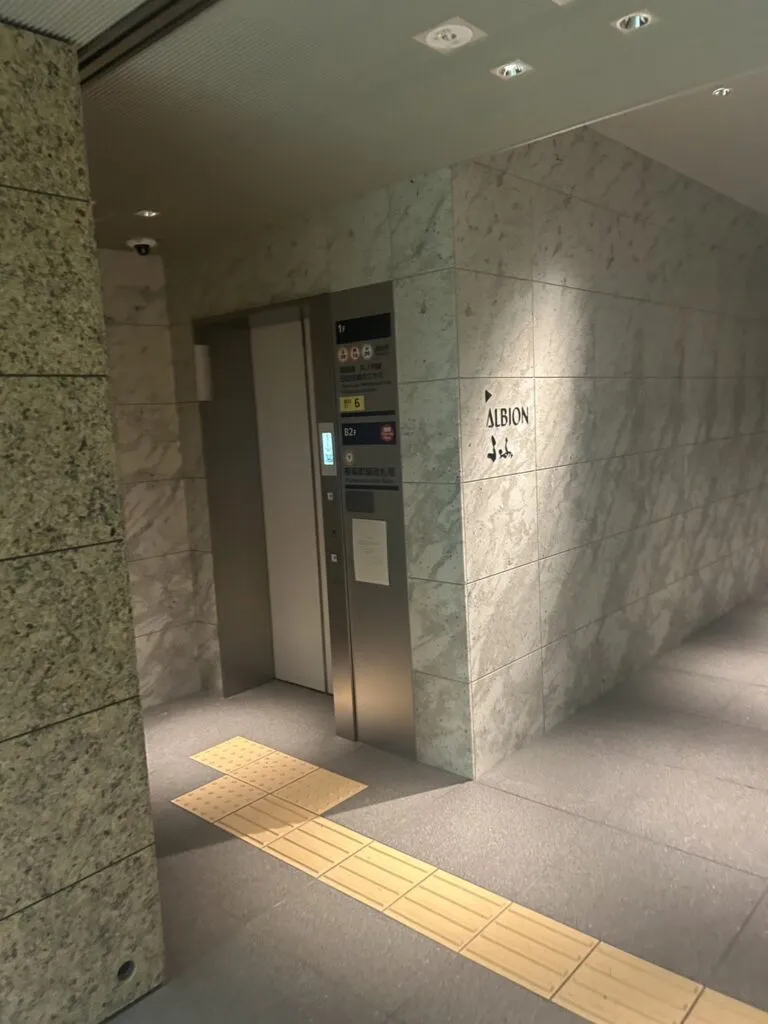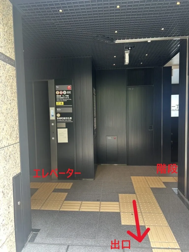(エレベーターの場合)進んで左、出入口通路ゆきに進むとエレベーターがあります。