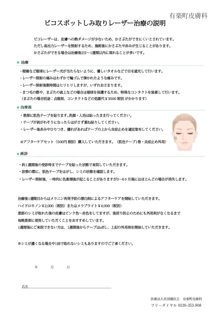 有楽町皮膚科 からだのシミに対するレーザー治療説明
